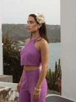 -35%Tipo: Conjunto com cropped e calça Detalhes: Cropped com amarração nas costas e calça com zíper e botões Tecido: Lyoncel